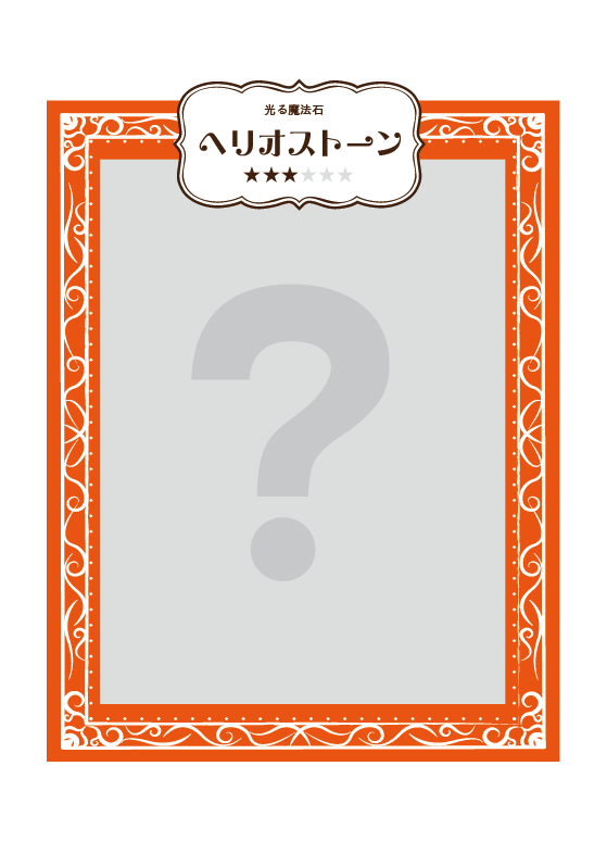 主にカエデの木の近くに生息しているメイプル・ディアの成体から採取される魔法石。メイプル・ディアは早朝の限られた時間帯にしか姿を現ないため極めて稀少価値が高い。ヘリオストーンは夜になる発光するためランプ代わりとなる。また、中に入っている蜜を摂取すると放たれた弓矢よりも早く走る能力が手に入る。